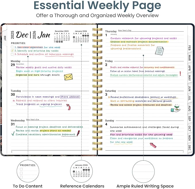 - Full 2026 Coverage: Plan with confidence from January to December 2026. Covering all 53 weeks, this planner provides monthly and weekly views with plenty of writing space to set goals, track progress, and stay on top of important dates.