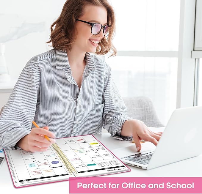 - Functionality Perfected, Style Exemplified: Revel in the embrace of 8.5" x 11" 2026 planner weekly and monthly, thick paper that exudes quality, and a hardcover cover adapting seamlessly to your lifestyle. Let monthly tabs and strong twin-wire binding elevate your planning journey, while the elastic band adds convenience for easy use. Contacts, a 2026 Yearly Overview, Reference Calendars, and 2026 Holidays enrich your journey.